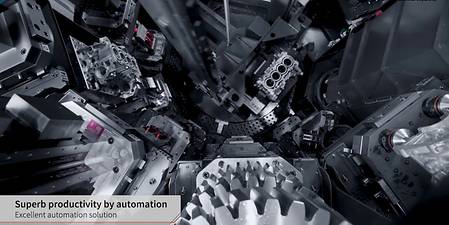 - Centro di lavoro orizzontale compatto con una superficie di appoggio di 11,2 m²
